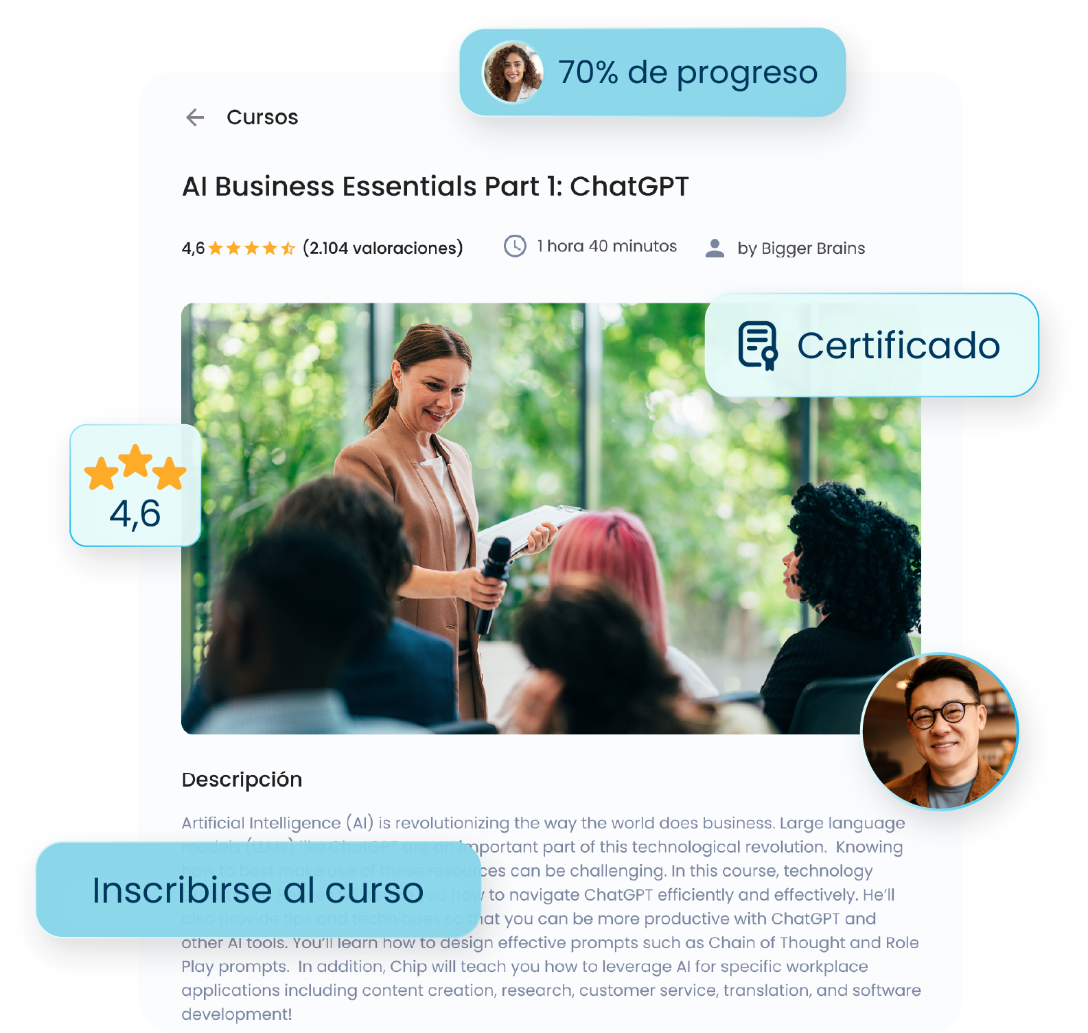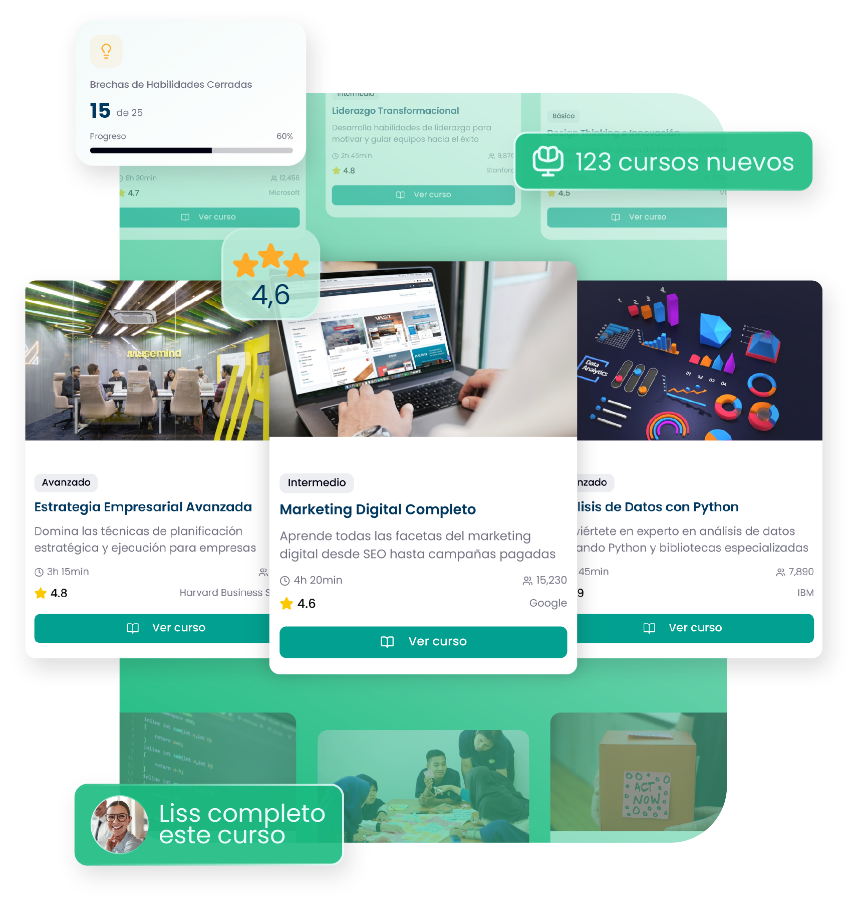 Impulsamos el desarrollo de tu equipo con rutas de aprendizaje personalizadas que alinean los objetivos individuales de los colaboradores con las metas estratégicas de la empresa, potenciando cada perfil y rol.